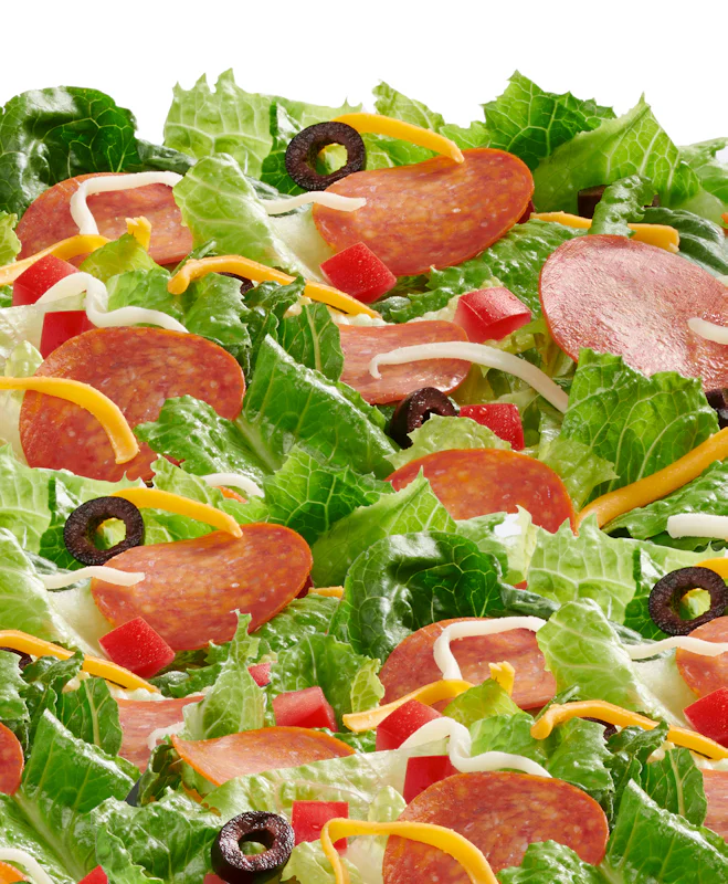 Pepperoni, Roma Tomatoes, Black Olives, Whole-Milk Mozzarella, Cheddar Cheese, and Romaine Lettuce